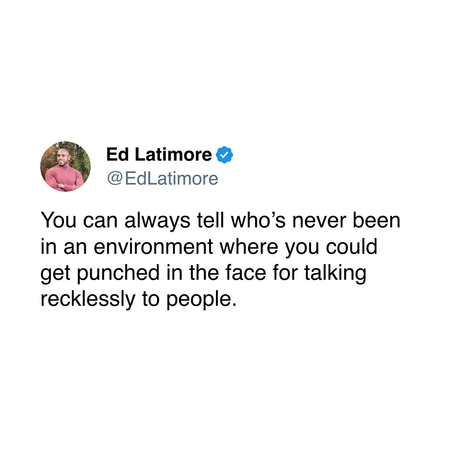 You can always tell who’s never been in an environment where you could get punched in the face for talking recklessly to people.